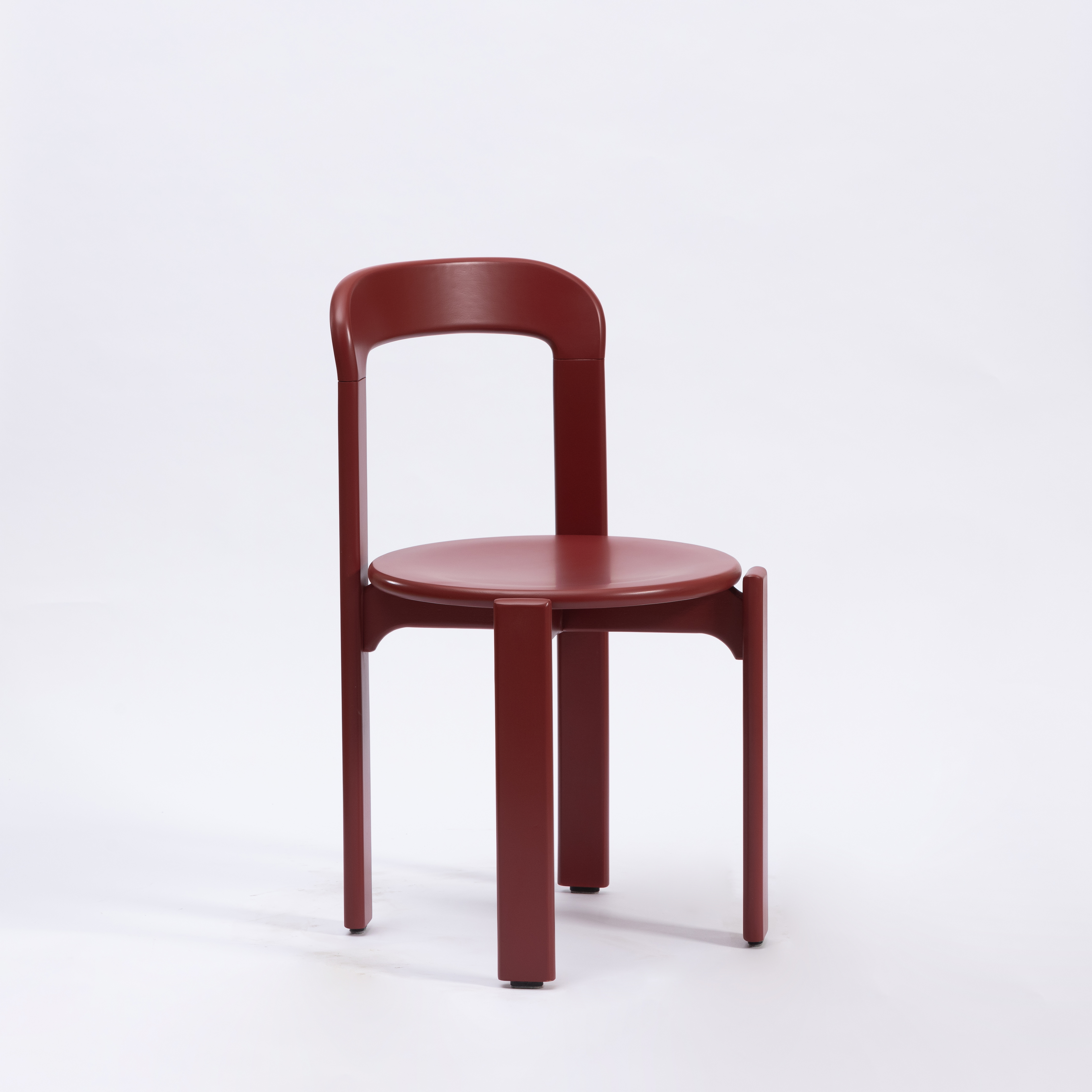 Made of molded plywood or lacquered solid wood (e.g., birch or beech), finished with a smooth, uniform wine-red coating.